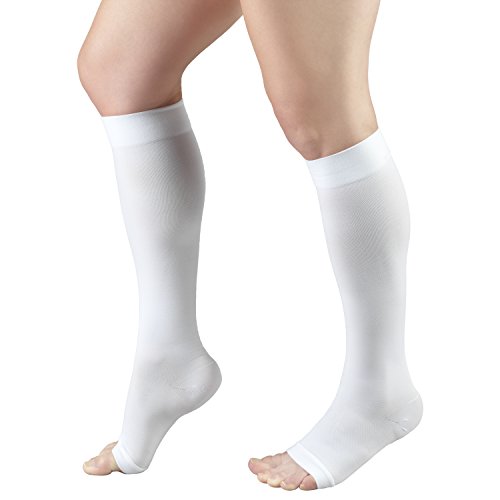 Truform Surgical Stockings, 18 mmHg Compression for Men and Women, Knee High Length, Open Toe, White, Medium